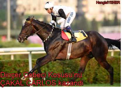 İstanbul Veliefendi Hipodromu’nda gecenin ilk kupalı mücadelesinde 3 yaşlı İngiliz tayları Dinçer Cebeci adına düzenlenen koşuda bir araya geldi. Çim pistteki 2100 metre mesafeli koşuyu Dicle Cemiloğlu’na ait ÇAKAL CARLOS (d.e. Artie Schiller – Divine Diva / THEATRICAL) jokeyi Ahmet Çelik ile kazandı. Kariyerine 7 Eylül 2012 günü başlayan safkan daha önceki 3 koşusunu da kum (sentetik) pistte kazananmıştı. Safkan bugün 8. startında ilk çim birinciliğini kazanırken birincilik sayısını da 4’e çıkardı. 10 Mayıs Cuma günü gerçekleştirilen koşuda (KV – 8 / S) VERDASKO (Gren Gönen – Viviana / MY VOLGA BOATMAN) ikinci olurken YARAMAZ ÇOCUK (Perfect Storm – Angel Eyes / ALWAYS A CLASSIC) ile MUCH TOO MUCH (Win River Win – Trickery / CYRANO DE BERGERAC) isimli taylar da tabelanın diğer sıralarını tamamladılar. 68.000 TL birincilik ikramiyeli koşunun bitiriş derecesi 2.09.75 olurken farklar ½ boy – boyun – 2,5 boy şeklinde gerçekleşti.