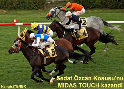 İstanbul Veliefendi Hipodromu'nda 1 Ağustos Çarşamba günü düzenlenen Sedat Özcan Koşusu'nu kazanan, S. Selman Taşbek'in MIDAS TOUCH (d.a. Unaccounted For - Flicker Of Hope / BAILLAMONT) isimli safkanı oldu. Jokey Uğur Polat idaresindeki safkan 1.57.83'lük derece yaparak koşudan ayrıldı. 5 yaşındaki safkan bugün yarış kariyerindeki 48. startını alırken gösterdiği performansla başarılarına yenisini ekleyerek birincilik sayısını 8'e çıkardı.