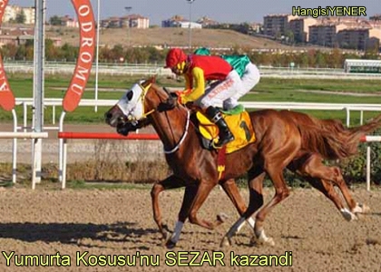 6 Ekim Cumartesi günü 75. Yıl Ankara Hipodromu'nda düzenlenen Yumurta Koşusu'nu (KV - 8 / S / DHÖW) M.Ali Özkan’ın SEZAR (Gobakbey – Gürşin / Kanatlı.3) isimli safkanı jokey Ayhan Kurşun ile 1400 metre kum pistte 1.37.58'lik derece yaparak kazandı..
