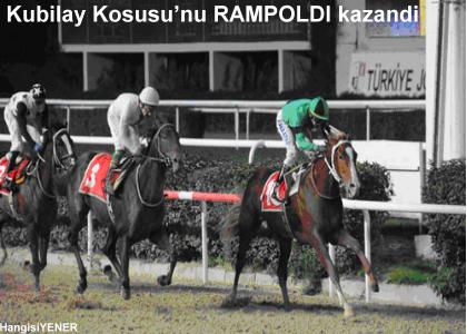 23 Aralık Pazar günü İzmir Şirinyer Hipodromu’nda koşulan Kubilay Koşusu’nu (Açık - G3) Tracy Kuyumciyan’ın sahibi olduğu RAMPOLDI (Bosporus– Deep Sea / Distant Relative) isimli safkan, jokeyi Halis Karataş ile kazandı.